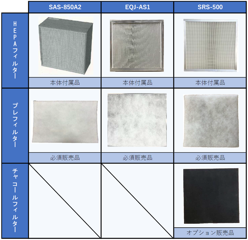 機種によって使用できるフィルターの種類、サイズが異なりますのでご注意ください。