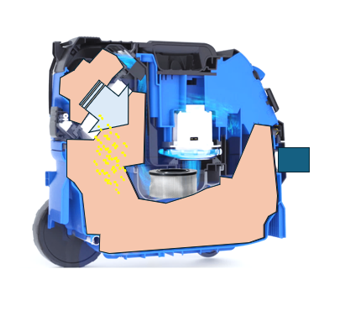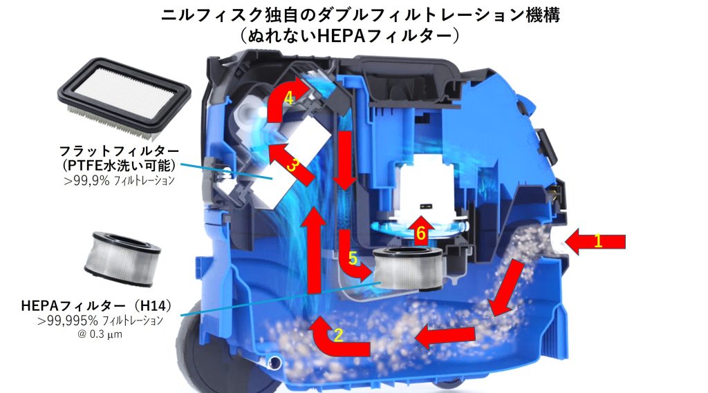 独自のダブルフィルトレーション構造によりHEPAフィルターが目詰まりしにくくなりました